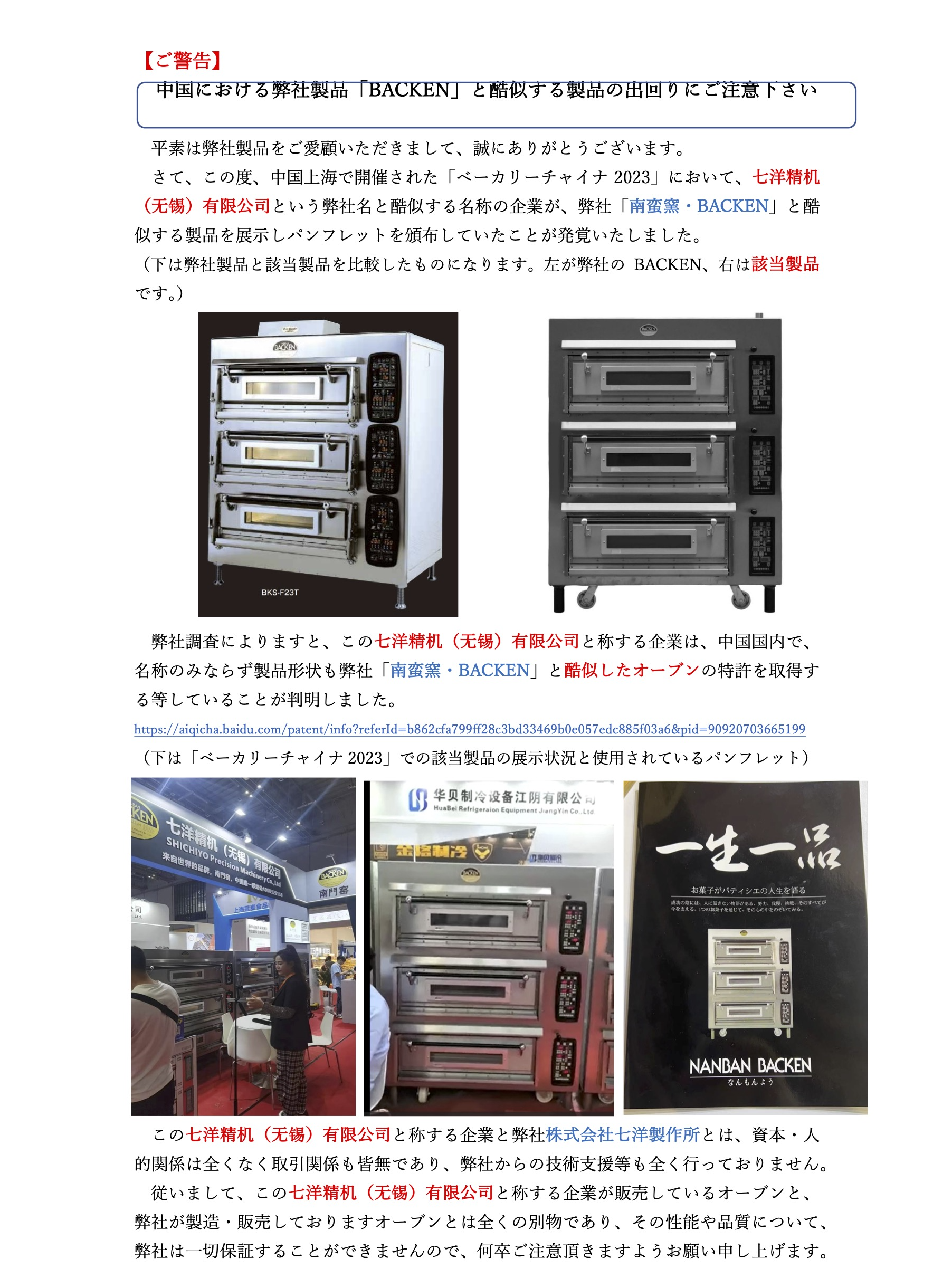 【ご警告】BACKENに酷似する製品にご注意下さい
